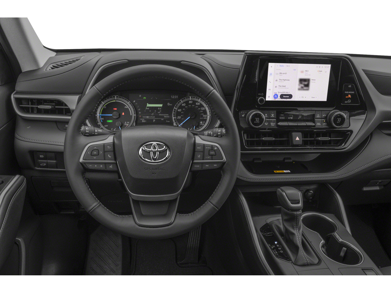 Check out the rest of the great features on this vehicle. 2.5L I4 PDI Hybrid DOHC 16V LEV3-SULEV30, 2nd Row Bench Seat, 3rd row seats: split-bench, 4-Wheel Disc Brakes, 6 Speakers, ABS brakes, Air Conditioning, All-Weather Floor/Cargo Liner, Alloy wheels, AM/FM radio: SiriusXM, Apple CarPlay/Android Auto, Auto High-beam Headlights, Auto-dimming Rear-View mirror, Automatic temperature control, Body Side Moldings, Brake assist, Bumpers: body-color, Cargo Cross Bars, Delay-off headlights, Driver door bin, Driver vanity mirror, Dual front impact airbags, Dual front side impact airbags, Electronic Stability Control, Emergency communication system: Safety Connect (up to 10-year trial subscription), Exterior Parking Camera Rear, Four wheel independent suspension, Front anti-roll bar, Front Bucket Seats, Front Center Armrest, Front dual zone A/C, Front fog lights, Front reading lights, Fully automatic headlights, Garage door transmitter: HomeLink, Heated door mirrors, Heated Front Bucket Seats, Heated front seats, Illuminated entry, Knee airbag, Leather Shift Knob, Leather steering wheel, Low tire pressure warning, Occupant sensing airbag, Outside temperature display, Overhead airbag, Overhead console, Panic alarm, Passenger door bin, Passenger vanity mirror, Power door mirrors, Power driver seat, Power Liftgate, Power moonroof, Power passenger seat, Power steering, Power windows, Radio: 8 Toyota Audio Multimedia, Rear air conditioning, Rear anti-roll bar, Rear reading lights, Rear window defroster, Rear window wiper, Reclining 3rd row seat, Remote keyless entry, Security system, SofTex Seat Trim, Speed control, Speed-sensing steering, Split folding rear seat, Spoiler, Steering wheel mounted audio controls, Telescoping steering wheel, Tilt steering wheel, Tow Hitch, Traction control, Trip computer, Turn signal indicator mirrors, Variably intermittent wipers, and Wheels: 18 Machined-Finish Alloy.