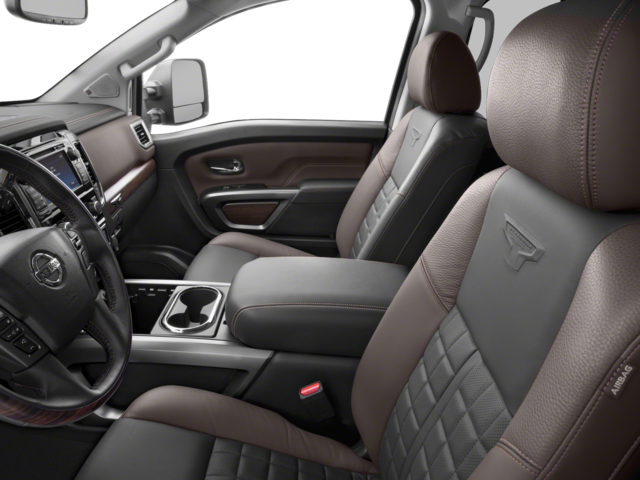 Check out the rest of the great features on this vehicle. Platinum Reserve Utility Bed Package, Platinum Utility Package, 12 Speakers, 3.357 Axle Ratio, 4-Wheel Disc Brakes, ABS brakes, Activation Disclaimer, Air Conditioning, Alloy wheels, AM/FM radio: SiriusXM, Auto tilt-away steering wheel, Auto-dimming door mirrors, Auto-dimming Rear-View mirror, Automatic temperature control, Brake assist, CD player, Chrome wheels, Compass, Delay-off headlights, Door Sill Kick Plates, Driver door bin, Driver vanity mirror, Dual front impact airbags, Dual front side impact airbags, Electronic Stability Control, Emergency communication system, Floor Mats, Front anti-roll bar, Front Bucket Seats, Front Center Armrest, Front dual zone A/C, Front fog lights, Front reading lights, Front wheel independent suspension, Garage door transmitter: HomeLink, Gooseneck Ball & Anchor Kit (K12), Heated & Cooled Captain's Chairs, Heated door mirrors, Heated front seats, Heated rear seats, Heated steering wheel, Illuminated entry, Illuminated running boards, Leather Shift Knob, Leather steering wheel, LED Fog Lights w/Dark Chrome Bezel, Low tire pressure warning, Memory seat, Navigation System, Outside temperature display, Overhead airbag, Overhead console, Panic alarm, Passenger door bin, Passenger vanity mirror, Power door mirrors, Power driver seat, Power passenger seat, Power steering, Power windows, Premium Leather Seat Trim, Radio data system, Radio: NissanConnect w/Navigation & Mobile Apps, Rain sensing wipers, Rear anti-roll bar, Rear seat center armrest, Rear step bumper, Rear Under Seat Storage, Rear window defroster, Remote keyless entry, Rockford Fosgate Premium Audio w/12 Speakers, Running Boards w/Dark Chrome, Security system, Speed control, Speed-sensing steering, Speed-Sensitive Wipers, Splash Guards, Split folding rear seat, Steering wheel memory, Steering wheel mounted audio controls, Tachometer, Telescoping steering wheel, Tilt steering wheel, Traction control, Turn signal indicator mirrors, Variably intermittent wipers, Ventilated front seats, Voltmeter, and Wheels: 20 x 7.5 Dark Chrome-Like PVD.