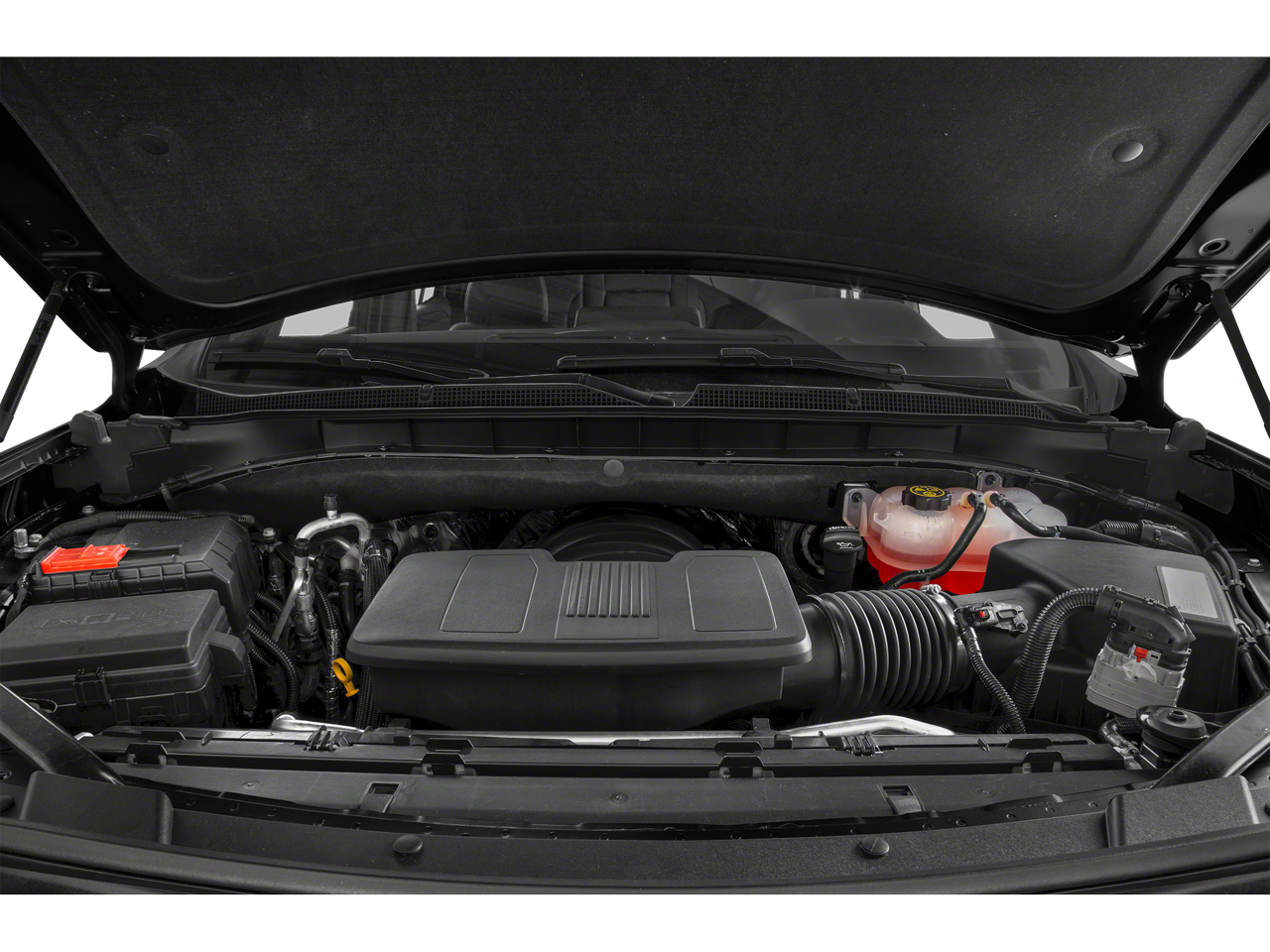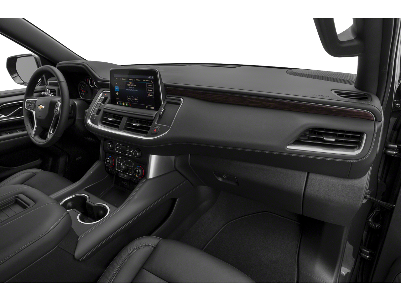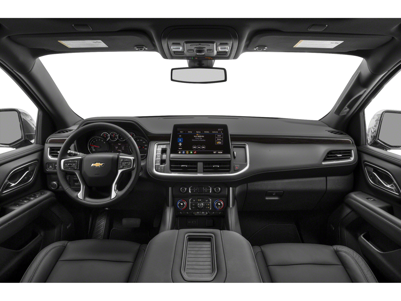 Check out the rest of the great features on this vehicle. License Plate Front Mounting Package, Preferred Equipment Group 1LT (1st & 2nd Row Color-Keyed Carpeted Floor Mats, 2 USB Data Ports, Auto-Dimming Inside Rear-View Mirror, Bright Front & Rear Door Sill Plates, Color-Keyed Carpeting Floor Covering, Driver & Front Outboard Passenger Airbags, Floor Console w/Storage Area, Hands-Free Rear Power Programmable Liftgate, HD Radio, Infotainment Display, Leather-Wrapped Steering Wheel, LED Daytime Running Lamps, Memory Settings for Driver, Remote Start, SiriusXM Radio w/360L, and Universal Home Remote), 4WD, Jet Black Leather, 10-Way Power Driver & Passenger Seat Adjusters, 3.23 Rear Axle Ratio, 3rd row seats: split-bench, 4-Wheel Disc Brakes, 9 Speakers, ABS brakes, Air Conditioning, Alloy wheels, AM/FM radio: SiriusXM with 360L, Apple CarPlay/Android Auto, Auto High-beam Headlights, Auto-dimming Rear-View mirror, Automatic temperature control, Bose 9-Speaker Stereo Audio System Feature, Brake assist, Bumpers: body-color, Compass, Delay-off headlights, Driver door bin, Driver vanity mirror, Dual front impact airbags, Dual front side impact airbags, Electronic Stability Control, Emergency communication system: OnStar and Chevrolet connected services capable, Four wheel independent suspension, Front anti-roll bar, Front Bucket Seats, Front Center Armrest, Front dual zone A/C, Front High-Back Reclining Bucket Seats, Front reading lights, Fully automatic headlights, Garage door transmitter, Heated door mirrors, Heated Driver & Front Passenger Seats, Heated front seats, Illuminated entry, Leather Seat Trim, Leather steering wheel, Low tire pressure warning, Memory seat, Not Equipped w/Automatic Stop/Start, Occupant sensing airbag, Outside temperature display, Overhead airbag, Overhead console, Panic alarm, Passenger door bin, Passenger vanity mirror, Power door mirrors, Power driver seat, Power Liftgate, Power passenger seat, Power steering, Power windows, Premium audio system: Chevrolet Infotainment 3, Premium Smooth Ride Suspension, Radio: Chevrolet Infotainment 3 Plus System, Rain sensing wipers, Rear air conditioning, Rear anti-roll bar, Rear reading lights, Rear seat center armrest, Rear window defroster, Rear window wiper, Remote keyless entry, Roof rack: rails only, Security system, Speed control, Speed-sensing steering, Split folding rear seat, Spoiler, Steering wheel mounted audio controls, Tachometer, Telescoping steering wheel, Tilt steering wheel, Traction control, Trip computer, Variably intermittent wipers, Voltmeter, Wheels: 18 x 8.5 Bright Silver Painted Aluminum, and Wheels: 20 x 9 Painted Aluminum.