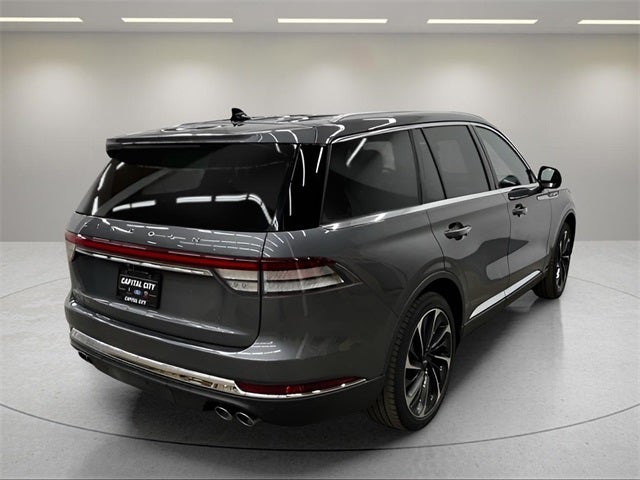 Check out the rest of the great features on this vehicle. Class IV Trailer Tow Package (4-Pin & 7-Pin Connectors, Blind Spot Information System, Class IV Hitch & Wiring, Smart Trailer Tow, and Trailer Sway Control), Elements Package Plus (Auto Air Refresh, Auto Heated/Ventilated Driver & Passenger Seats, Heated Steering Wheel, Heated VisioBlade Wipers, and Heated/Ventilated 2nd Row Outboard Seats), Equipment Group 201A (Head-Up Display and Phone As A Key), Illumination Package (Adaptive Pixel LED Headlamps, Illuminated Lincoln Star in Grille, and LED Fog Lamps), Lincoln Co-Pilot360 1.5 Plus (Active Park Assist 2.0, Evasive Steering Assist, Intelligent Adaptive Cruise Control, and Reverse Brake Assist), Luxury Package (30-Way Perfect Position Seats w/Active Motion, Radio: Revel Ultima 3D Audio System w/28 Speakers, and Rear Door Sunshades), 14 Speakers, 3.58 Axle Ratio, 3rd row seats: split-bench, 4-Wheel Disc Brakes, ABS brakes, Adaptive suspension, Air Conditioning, Alloy wheels, AM/FM radio: SiriusXM, Audio memory, Auto High-beam Headlights, Auto-dimming door mirrors, Auto-dimming Rear-View mirror, Automatic temperature control, Brake assist, Bumpers: body-color, Compass, Delay-off headlights, Driver door bin, Driver vanity mirror, Dual front impact airbags, Dual front side impact airbags, Electronic Stability Control, Emergency communication system, Engine Block Heater, Four wheel independent suspension, Front anti-roll bar, Front Bucket Seats, Front Center Armrest, Front dual zone A/C, Front reading lights, Fully automatic headlights, Garage door transmitter, Hands-Free Liftgate Delete, Heated door mirrors, Heated front seats, HVAC memory, Illuminated entry, Knee airbag, Leather steering wheel, Low tire pressure warning, Memory seat, Navigation System, Occupant sensing airbag, Outside temperature display, Overhead airbag, Overhead console, Panic alarm, Passenger door bin, Passenger vanity mirror, Power door mirrors, Power driver seat, Power Liftgate, Power moonroof: Panoramic Vista Roof, Power passenger seat, Power steering, Power windows, Premium Lthr Heated/Ventilated Fnt Captain's Chairs, Radio data system, Radio: Revel AM/FM Audio System w/14 Speakers, Rain sensing wipers, Rear air conditioning, Rear anti-roll bar, Rear audio controls, Rear dual zone A/C, Rear reading lights, Rear window defroster, Rear window wiper, Remote keyless entry, Security system, SiriusXM Radio, Speed control, Speed-Sensitive Wipers, Split folding rear seat, Spoiler, Steering wheel memory, Steering wheel mounted A/C controls, Steering wheel mounted audio controls, SYNC 3 Communication & Entertainment System, Tachometer, Telescoping steering wheel, Tilt steering wheel, Traction control, Trip computer, Turn signal indicator mirrors, Variably intermittent wipers, Wheels: 20 Bright-Machined Aluminum, and Wheels: 22 Bright-Machined Aluminum.