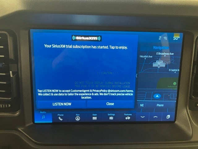 Check out the rest of the great features on this vehicle. Equipment Group 322A Mid Package (2-Door Intelligent Access w/Lock/Unlock, Ambient Footwell Lighting, Auto-Dimming Interior Rear-View Mirror, Connected Navigation, Dr & Pass Illuminated Sliding Visor Vanity Mirrors, Dual Smart Charging USB Ports, Dual-Zone Electronic Automatic Temperature Control, Front Row Heated Seats, Power Outlet - Back Side of Center Floor Console, Rear Parking Sensors, and Remote Start System), 4-Wheel Disc Brakes, 4.46 Axle Ratio, 7 Speakers, ABS brakes, Air Conditioning, Alloy wheels, AM/FM radio: SiriusXM with 360L, AM/FM Stereo, Auto High-Beam Headlamps, Auto High-beam Headlights, Black Roof Rails w/Crossbars, BLIS Blind Spot Information System, Brake assist, Brush Guard, Compass, Convertible HardTop, Convertible roof lining, Delay-off headlights, Driver door bin, Driver vanity mirror, Dual front impact airbags, Dual front side impact airbags, Electronic Stability Control, Emergency communication system: 911 Assist, Exterior Parking Camera Rear, Ford Performance Heavy-Duty Modular Front Bumper, Front & Rear Floor Liners, Front anti-roll bar, Front Bucket Seats, Front Center Armrest, Front License Plate Bracket, Front reading lights, Front wheel independent suspension, Fully automatic headlights, Glass rear window, Heated door mirrors, Illuminated entry, Integrated roll-over protection, Lane-Keeping System, Leather Shift Knob, Low tire pressure warning, Marine Grade Vinyl Bucket Seats, Occupant sensing airbag, Outside temperature display, Overhead airbag, Overhead console, Panic alarm, Passenger door bin, Passenger vanity mirror, Power door mirrors, Power steering, Power windows, Pre-Collision Assist w/Automatic Emergency Braking, Radio data system, Rear window defroster, Rear window wiper, Rear-View Camera, Remote keyless entry, Security system, SiriusXM Radio w/360L, Speed control, Split folding rear seat, Steering wheel mounted audio controls, SYNC 4, Tachometer, Telescoping steering wheel, Tilt steering wheel, Traction control, Trip computer, Variably intermittent wipers, and Wheels: 17 Black High Gloss-Painted Aluminum.